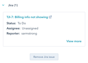 - From the HubSpot ticket, in the right panel, Jira section, click Associate Jira issue. Search for the Jira issue by typing the ID or name. Select the ticket you want to associate. Repeat if there are multiple related Jira tickets (this will be common/normal given our workflow).