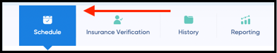 - In the schedule view find the patient you would like to verify manually. You can navigate to days in the future and days in the past by using the right and left arrows next to the date.