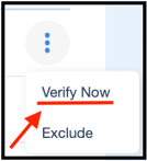- This will give you a drop down with two options. You will need to select Verify Now.
