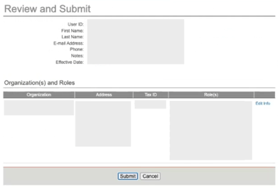 - In the "Review and Submit" view, please review the information for accuracy and then click "Submit" at the the bottom of the page.