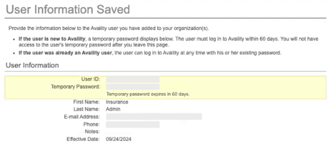 - In the "User Information Saved" view, please copy the temporary password and provide that information to Zuub Support or your Customer Success Manager.