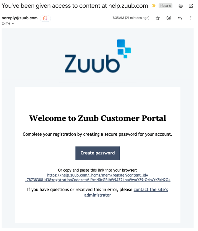 Please follow these steps to setup your Zuub Customer Ticket Portal Access:
